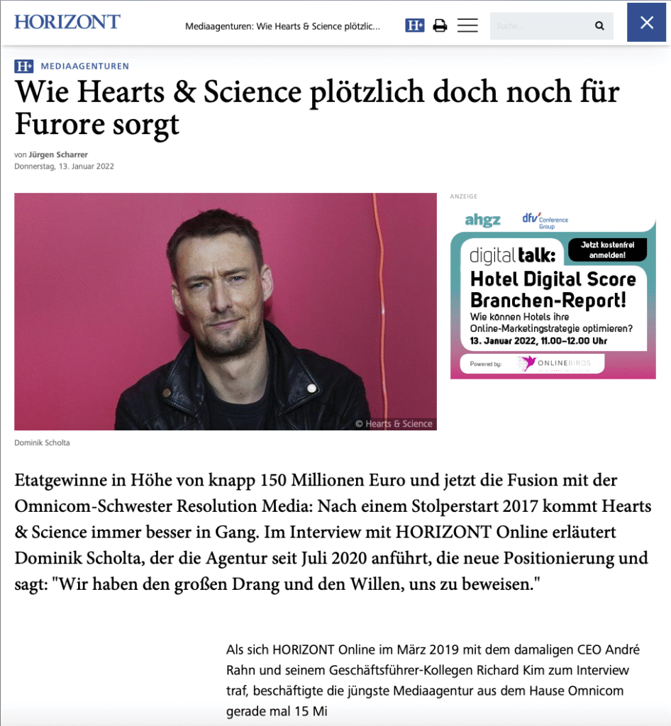 Ich freue mich riesig über die Veröffentlichung meines Portraits von Dominik auf der Webpage der Horizont am 13. Januar 2022.