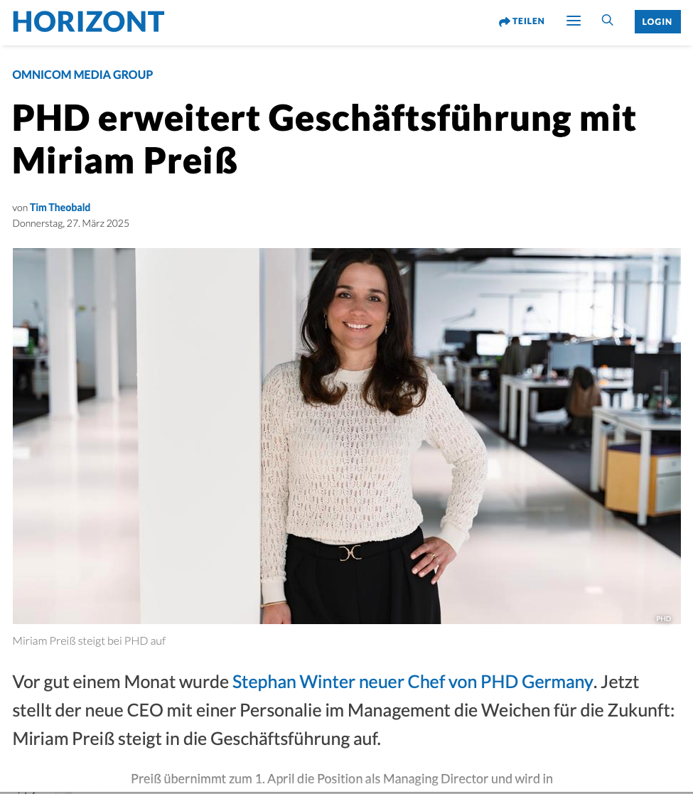 Mein Porträt von Miriam Preiss in der Meldung der Horizont vom 27. März 2025